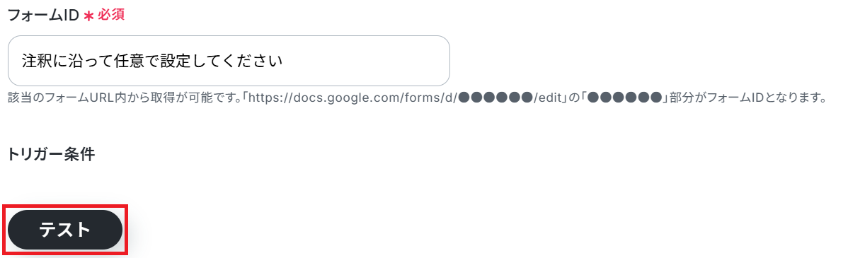 次に、テキストボックス下部の説明通りにフォームID を入力してテストしてください。