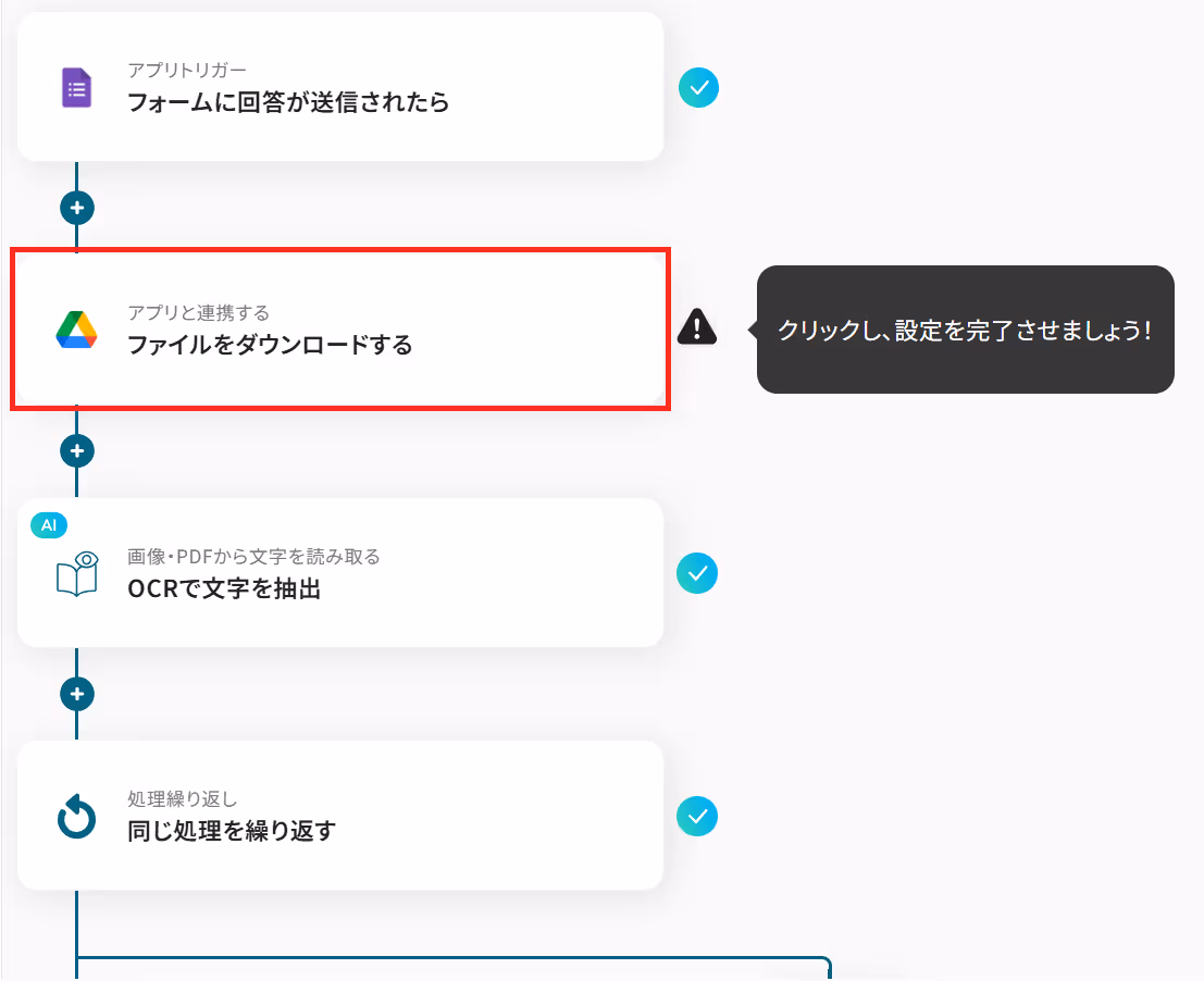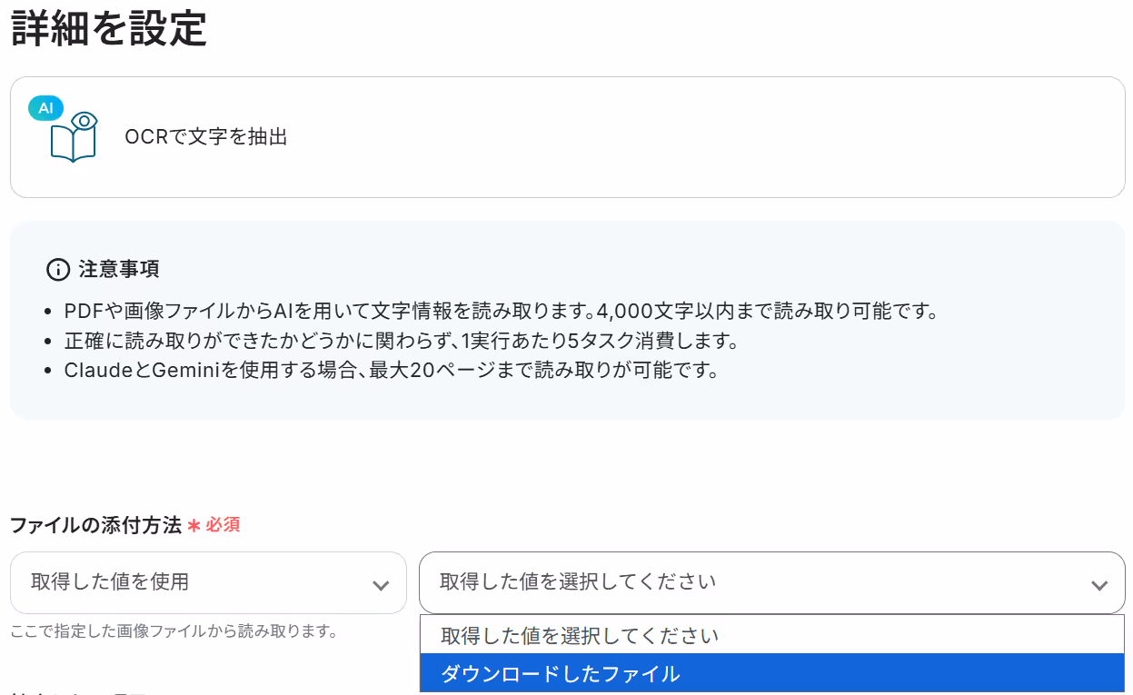※OCRや音声を文字起こしするAIオペレーションは、チームプラン・サクセスプラン限定の機能です。フリープランやミニプランでセットするとエラーになってしまうので、ご注意ください。
