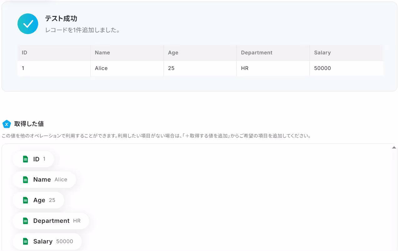 この設定により、次のステップではデータを1行ずつ読み取りながら処理を進められるようになります。