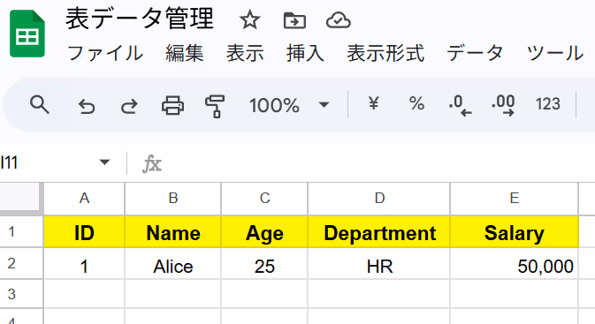 こちらの内容を表のままGoogle スプレッドシートに追記する想定で進めていきます。