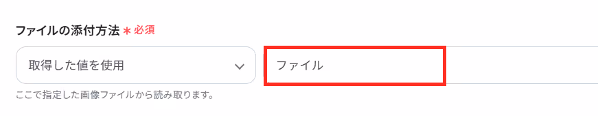 「ファイルの添付方法」は、Discordから取得した値の「ファイル」を使用するように設定します。