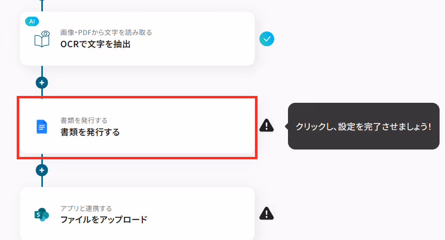 今回は例として、Googleドキュメントで取得した値から「発行した書類」を設定してみます。