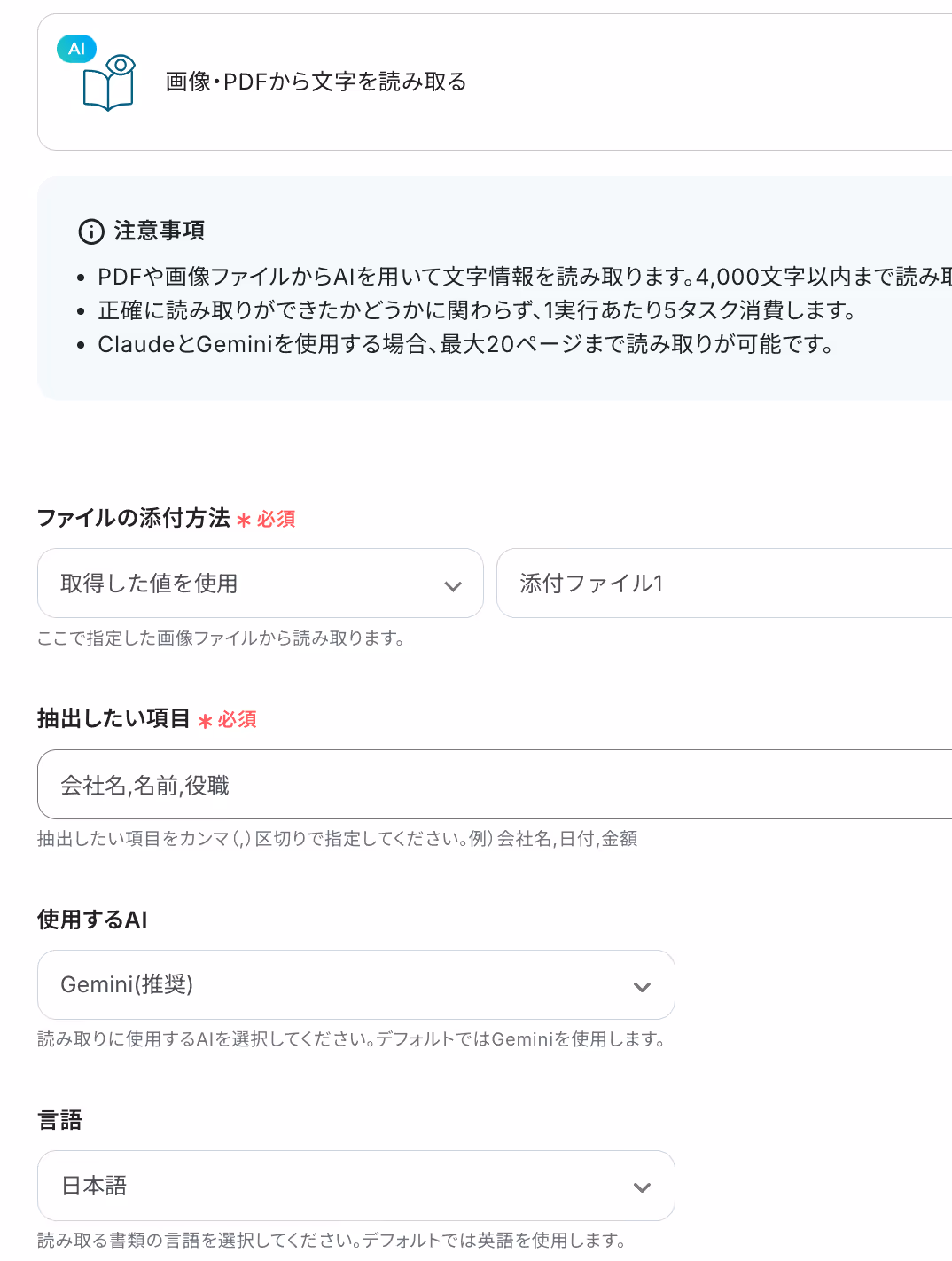 ※OCRは、チームプラン・サクセスプラン限定の機能です。フリープランやミニプランでセットするとエラーになってしまうので、ご注意ください。