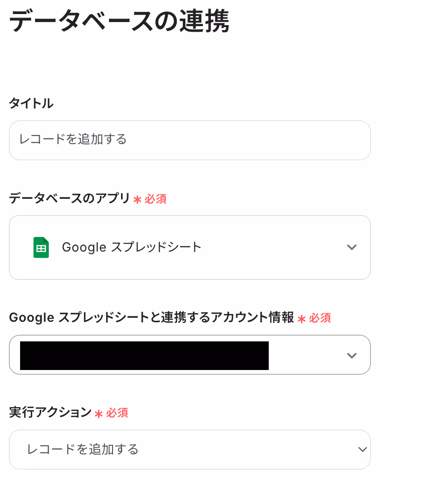 ※【Google スプレッドシート】データベースを操作するオペレーションについて、Googleスプレッドシートの表やヘッダーに関する注意点も併せてご参照ください。