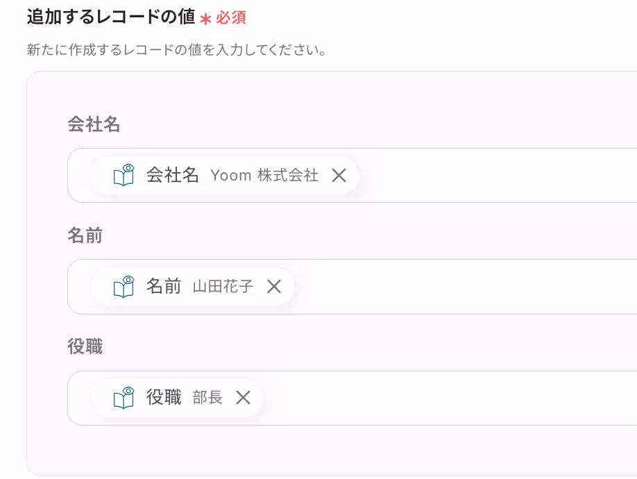 用意したらYoomの設定画面に戻り「レコードを追加する」をクリック。