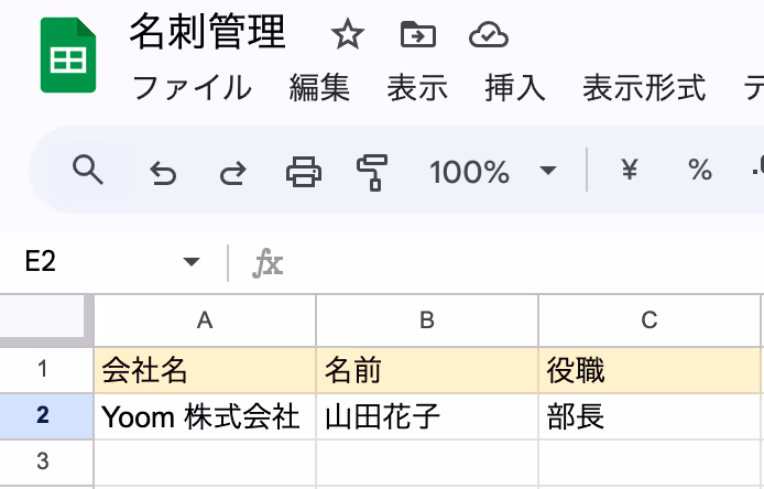 まず準備として、任意(ここでは名刺情報管理シート)のシートを用意しておきましょう。