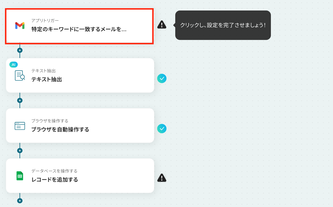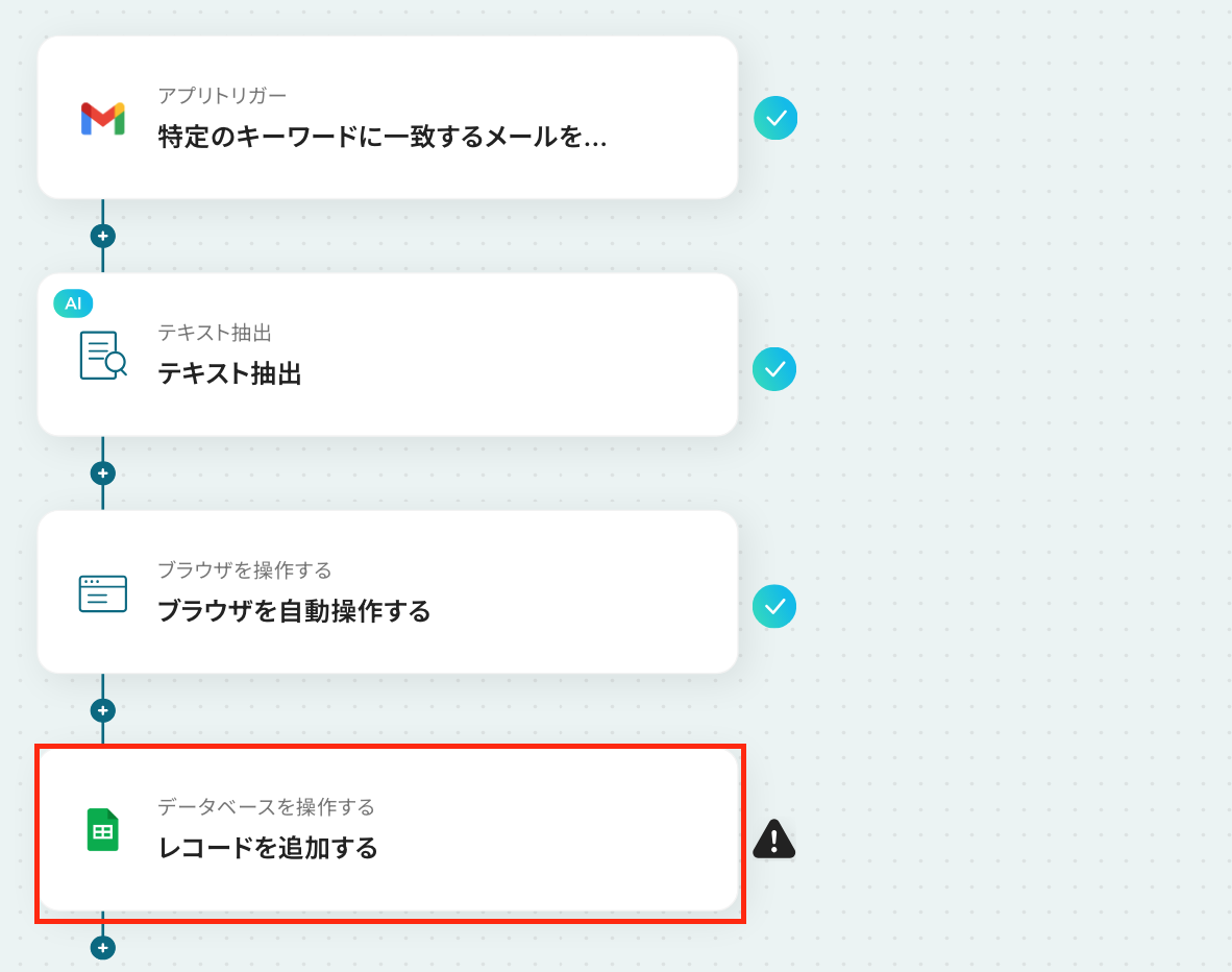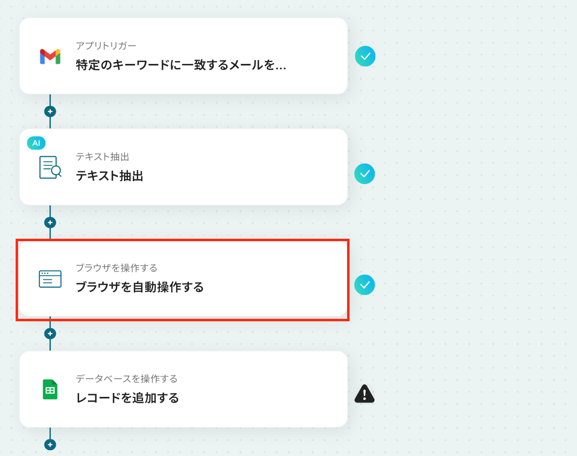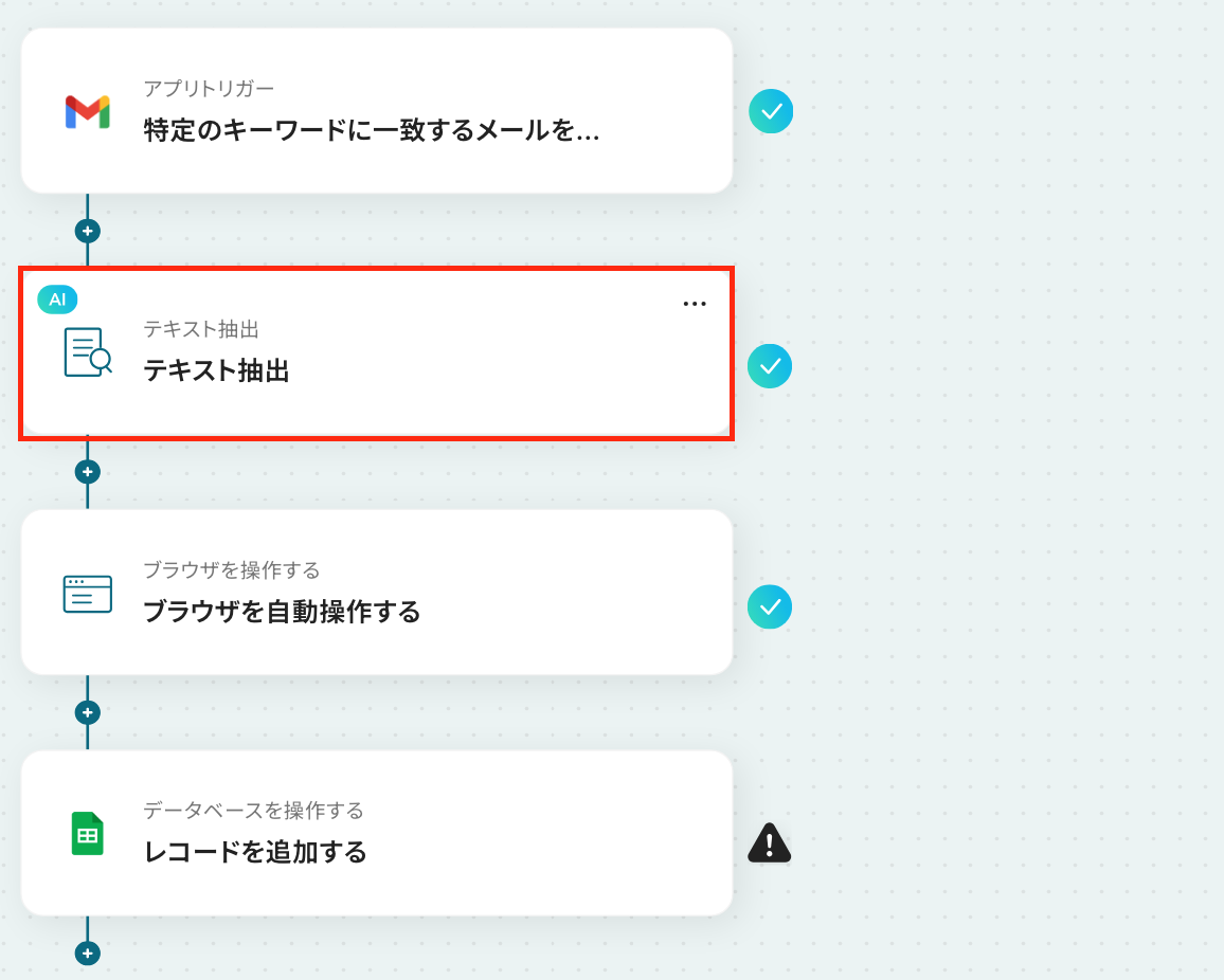 それではここから代表的な例として、Gmailで特定のメールを受信した際に、メール本文内のURLからテキストを抽出し、Google スプレッドシートに自動で追加するフローを解説していきます!