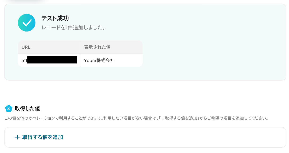 これは、Yoomが正しくデータを取得できたかを確認する目印のようなものです。