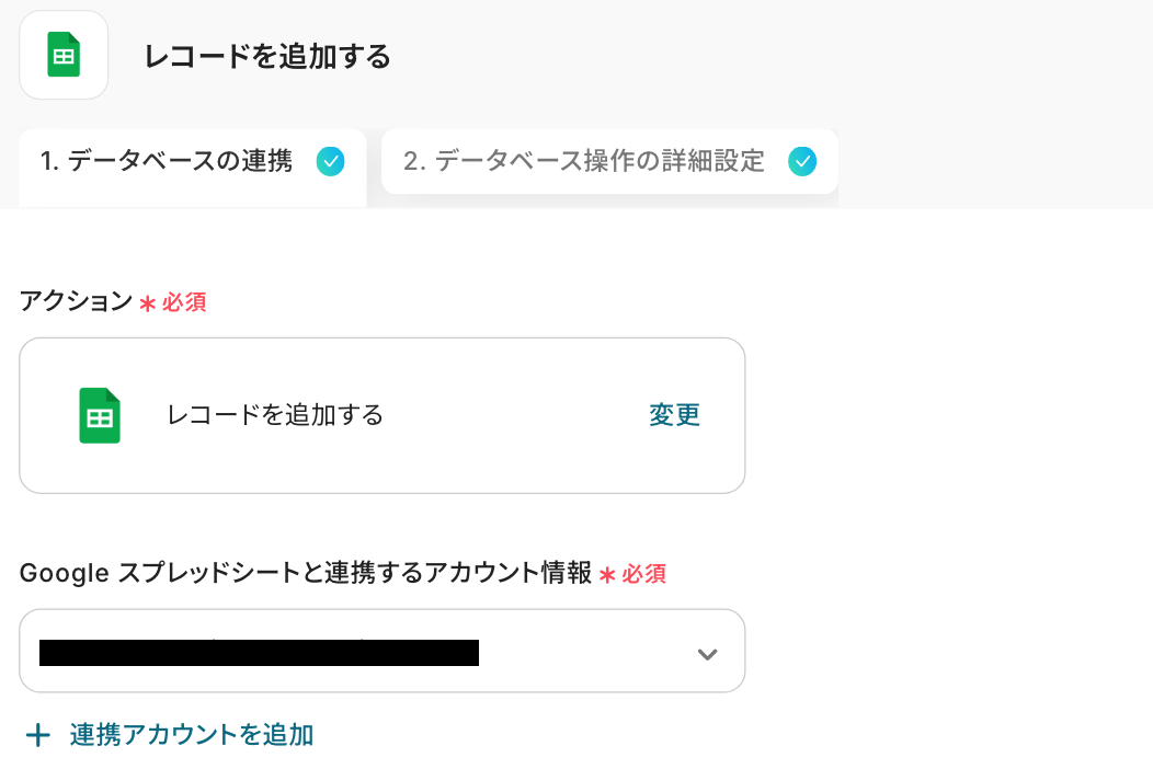 ここでは、 Googleスプレッドシートにレコードを追加する設定をします。