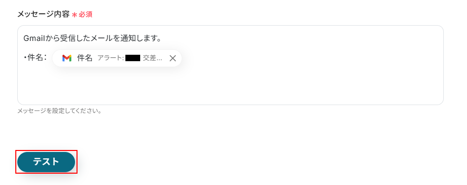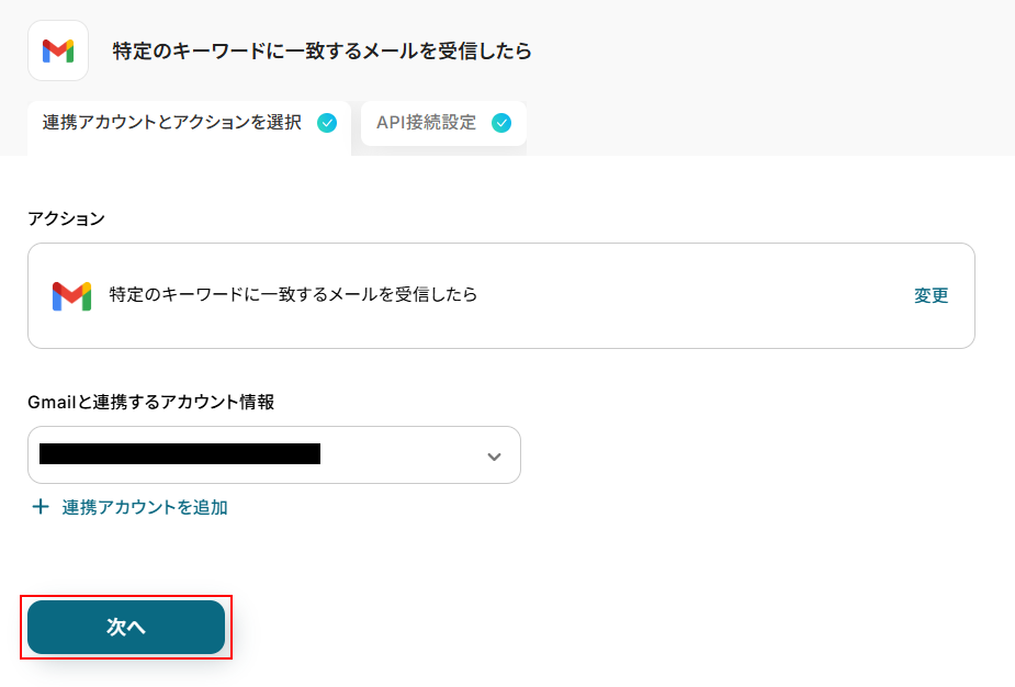 次にキーワードを設定し、キーワードを含むメールを連携するアカウント情報で設定しているGmailアカウントで受信してください。