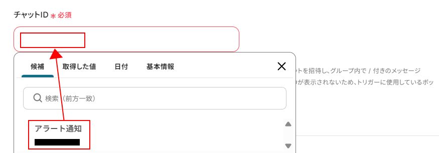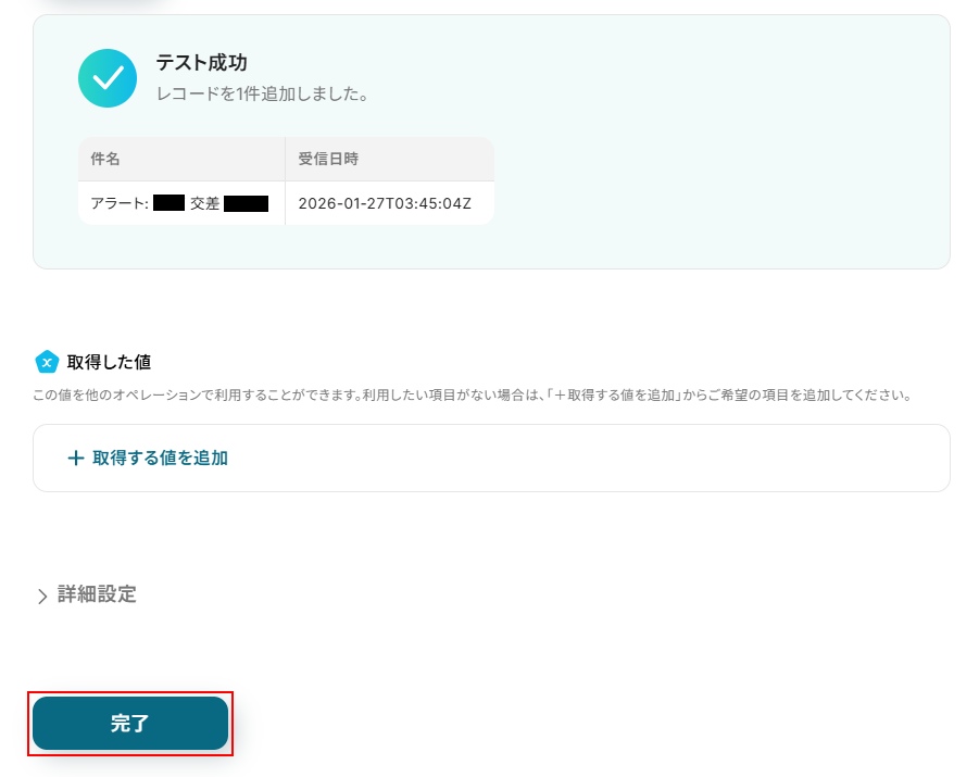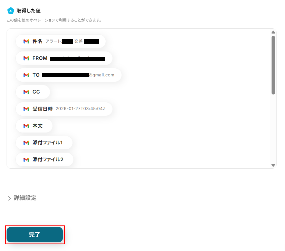 取得した値は実行した結果が設定される動的な値として利用できるため、このあとの設定でも使用します。