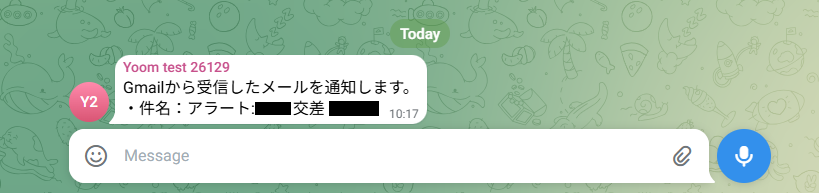 - Telegramへの通知メッセージは、本文を自由にカスタマイズできます。固定のテキストだけでなく、トリガーで受信したメールの件名や本文などの情報を変数としてメッセージに含めることも可能です