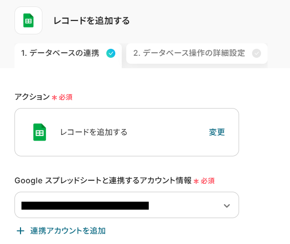 ステップ4:Google スプレッドシートにレコードを追加する設定