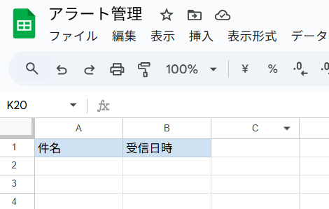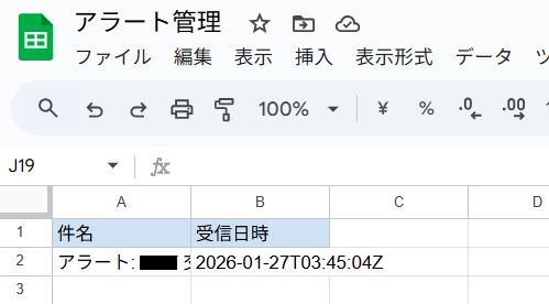 今回ご紹介するテンプレートでは、Gmailで受信したアラートの情報をGoogle スプレッドシートに記載します。
