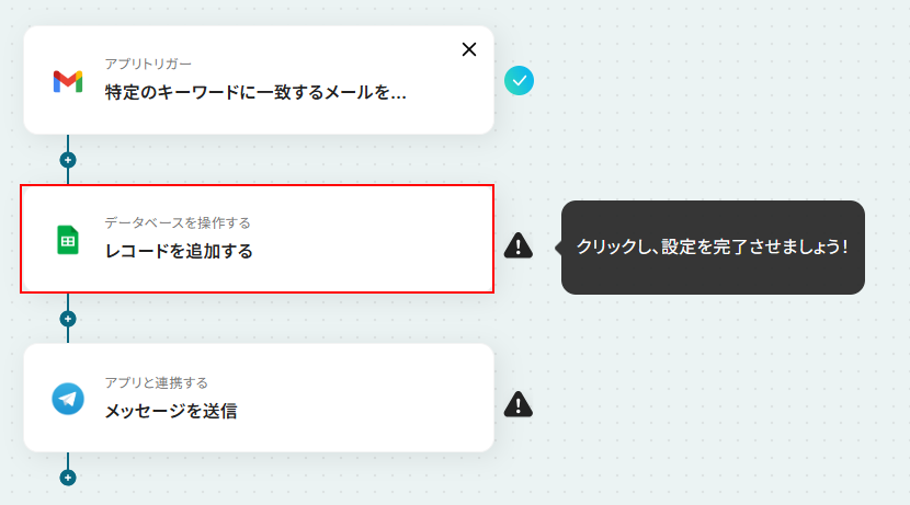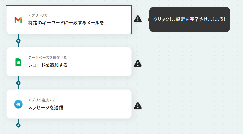 それではここから代表的な例として、Gmailでアラートメールを受信したら、その内容を自動で抽出し、Google スプレッドシートに記録後、Telegramに通知するフローを解説していきます!