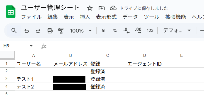 そのため、事前にエージェント情報を管理するためのGoogle スプレッドシートを用意しておく必要があります。
