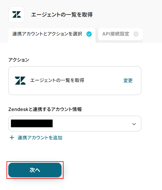 ステップ4:Zendeskのエージェントの一覧を取得する設定