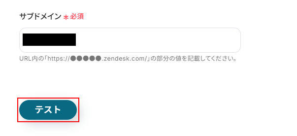 Zendeskの画面からURLをコピーしたら、注釈を確認しながらサブドメインとなる箇所を抜き出し、入力してください。