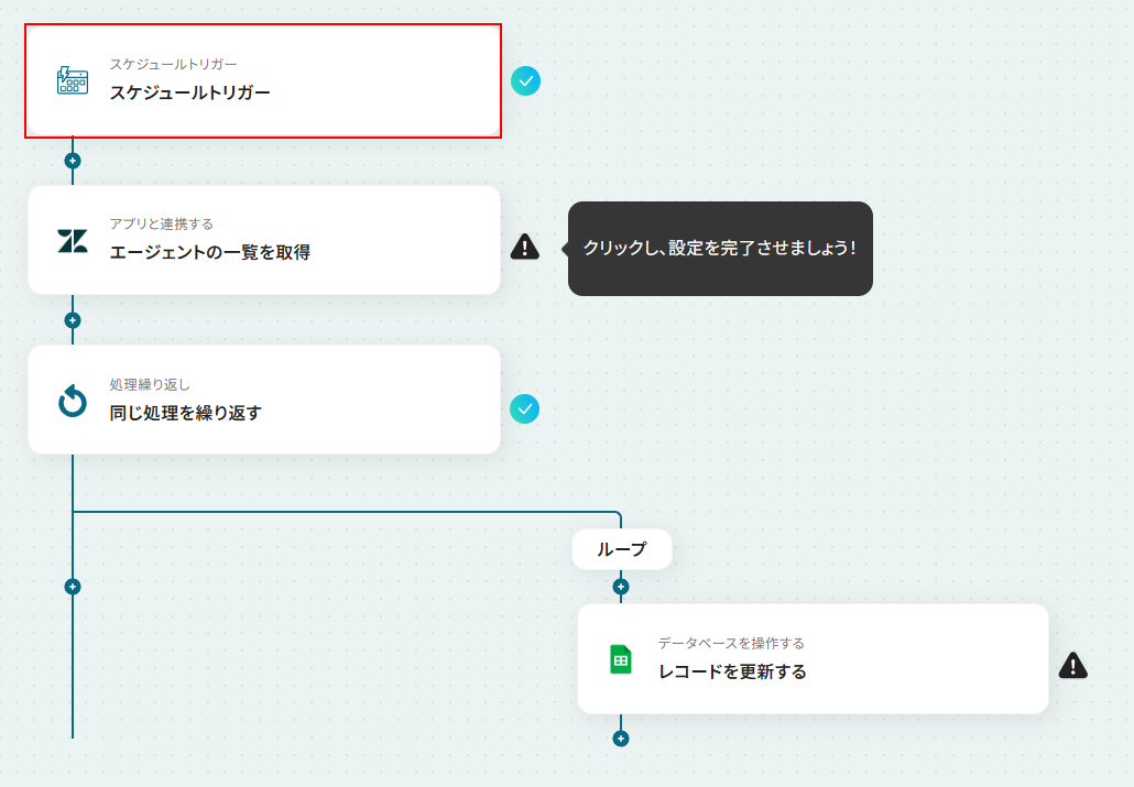 それではここから代表的な例として、毎朝Zendeskのエージェント情報を取得し、Google スプレッドシートのレコードを自動で更新するフローを解説していきます!