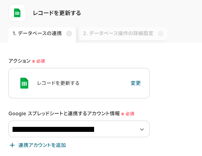 ステップ6:Google スプレッドシートのレコードを更新する設定