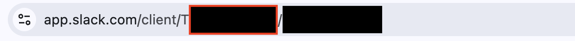 Slackをブラウザで開くと、URLにワークスペース(チーム)やチャンネルを識別するIDが表示されます。