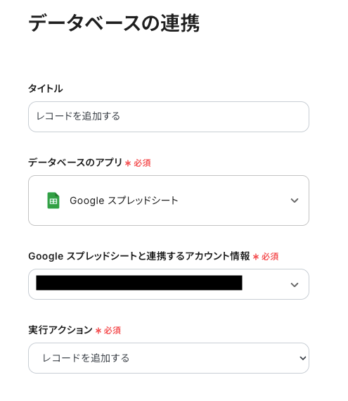 Google スプレッドシートと連携するアカウント情報も確認しましょう。
