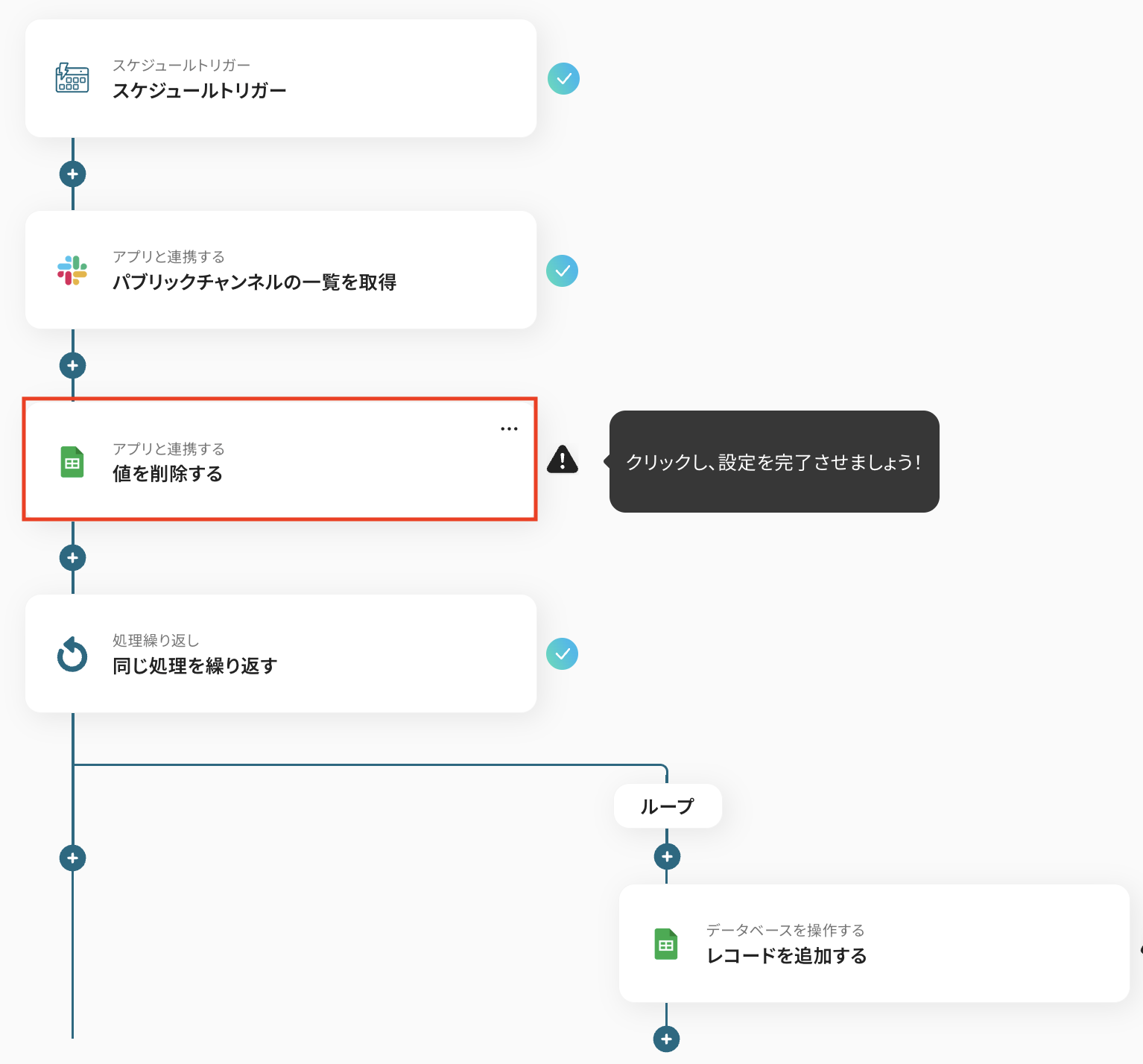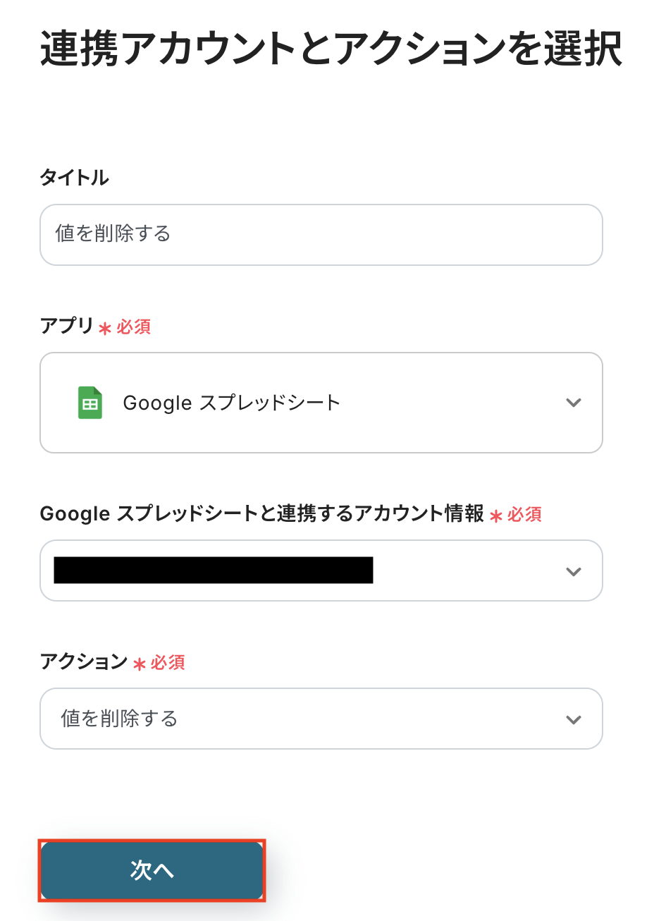 続いて、Google スプレッドシートの値を削除する設定を行いましょう。