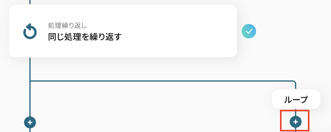 フローボット内で「同じ処理を繰り返す」ブロックの下にある +ボタン をクリックし、連携したいアプリを選択して設定を進めてください。