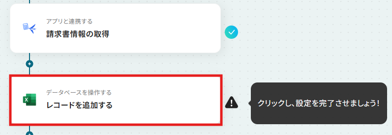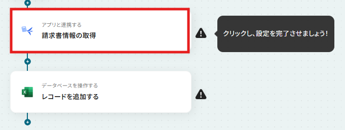 フローに戻り、「請求書情報の取得」のアイコンをクリックします。