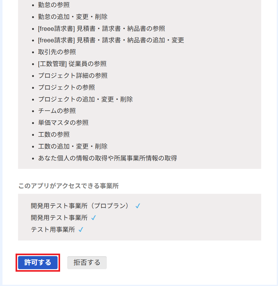 「アプリの連携開始」の内容を確認して末尾にある「許可する」をクリックしましょう。
