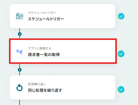 フローに戻り、「請求書一覧の取得」のアイコンをクリックします。