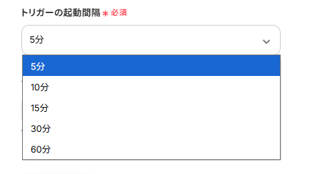 ・トリガーは5分、10分、15分、30分、60分の間隔で起動間隔を選択できます。