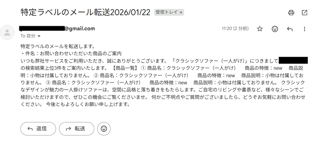 もし、Gmailで特定のラベルが付いたメールを受信した際に、指定した担当者へ自動で転送する仕組みがあれば、このような手作業による情報共有の手間から解放され、対応漏れや遅延を防ぎ、よりスムーズな連携体制を構築できます!