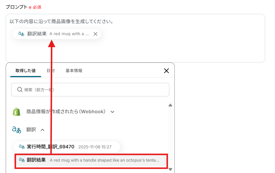 そのためプロンプトはテキストを直接入力し、毎回変動することが望ましいデータ(商品名・商品説明など)は取得した値を活用しましょう!