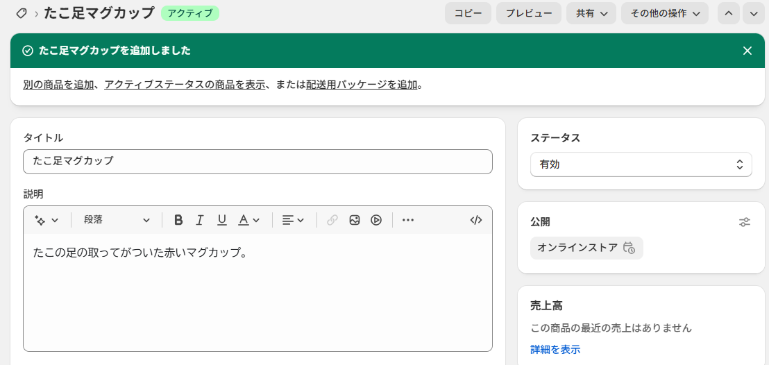 Webhookの設定が完了したら、テスト用に新しい商品を作成します。