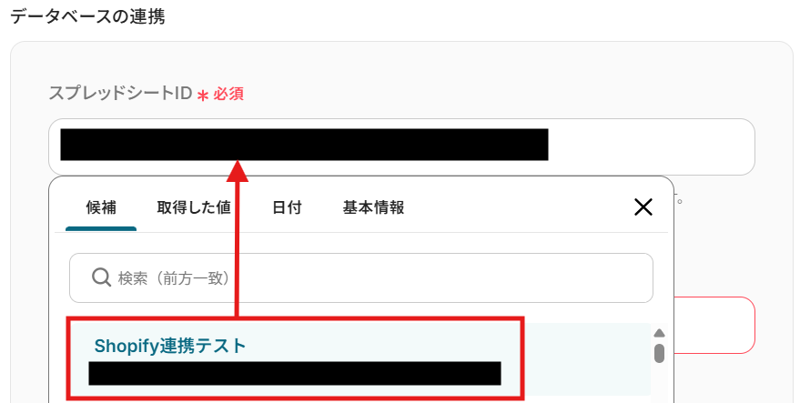 こちらもShopifyと同様に、ステップ1でマイアプリ連携したGoogle スプレッドシートのアカウント情報が自動で表示されます。