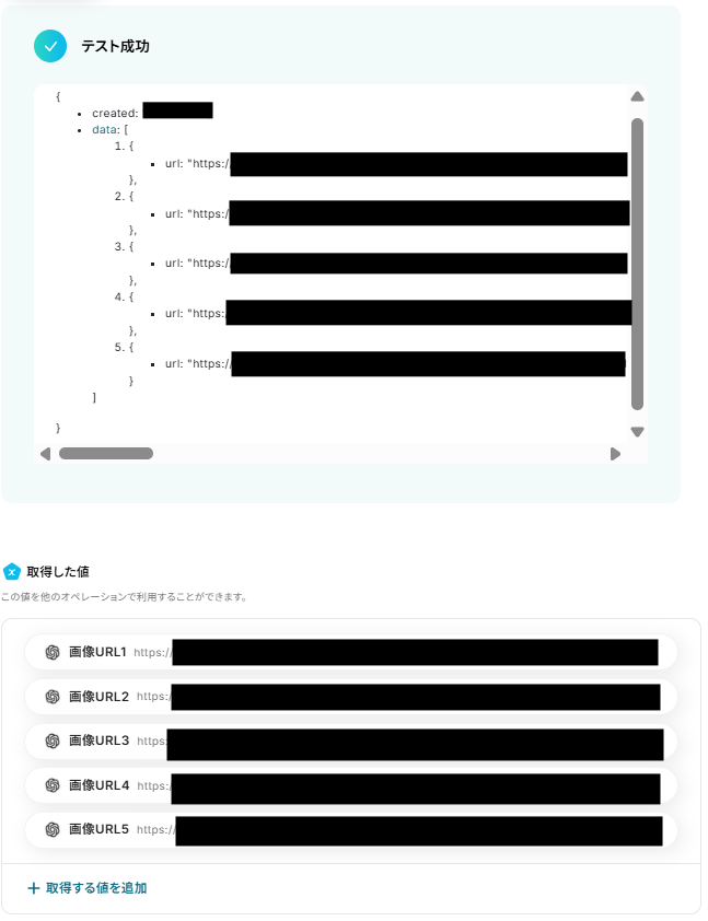 最後に、OpenAIで生成した画像を管理するために、Google スプレッドシートに画像URLを記録する設定を行います。