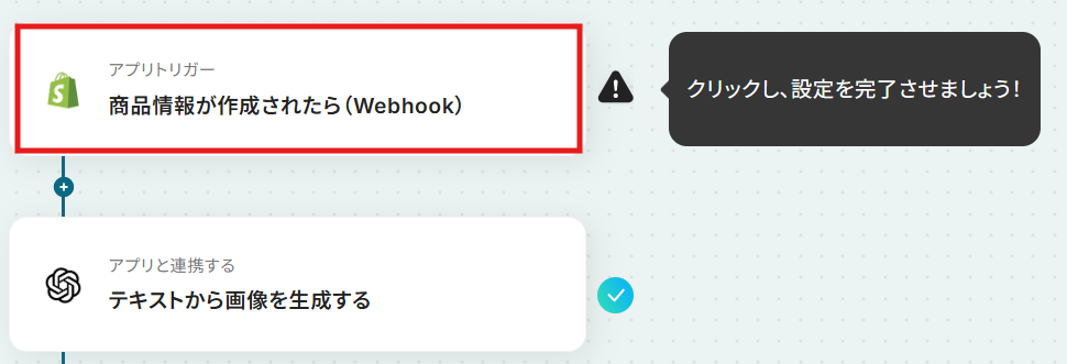それではここから代表的な例として、「Shopifyに商品情報が作成された際に、その情報をもとにOpenAIで画像を自動生成し、結果をGoogle スプレッドシートに記録する」フローを解説していきます!