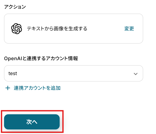 アクションは、「テキストから画像を生成する」のままで次に進みましょう!