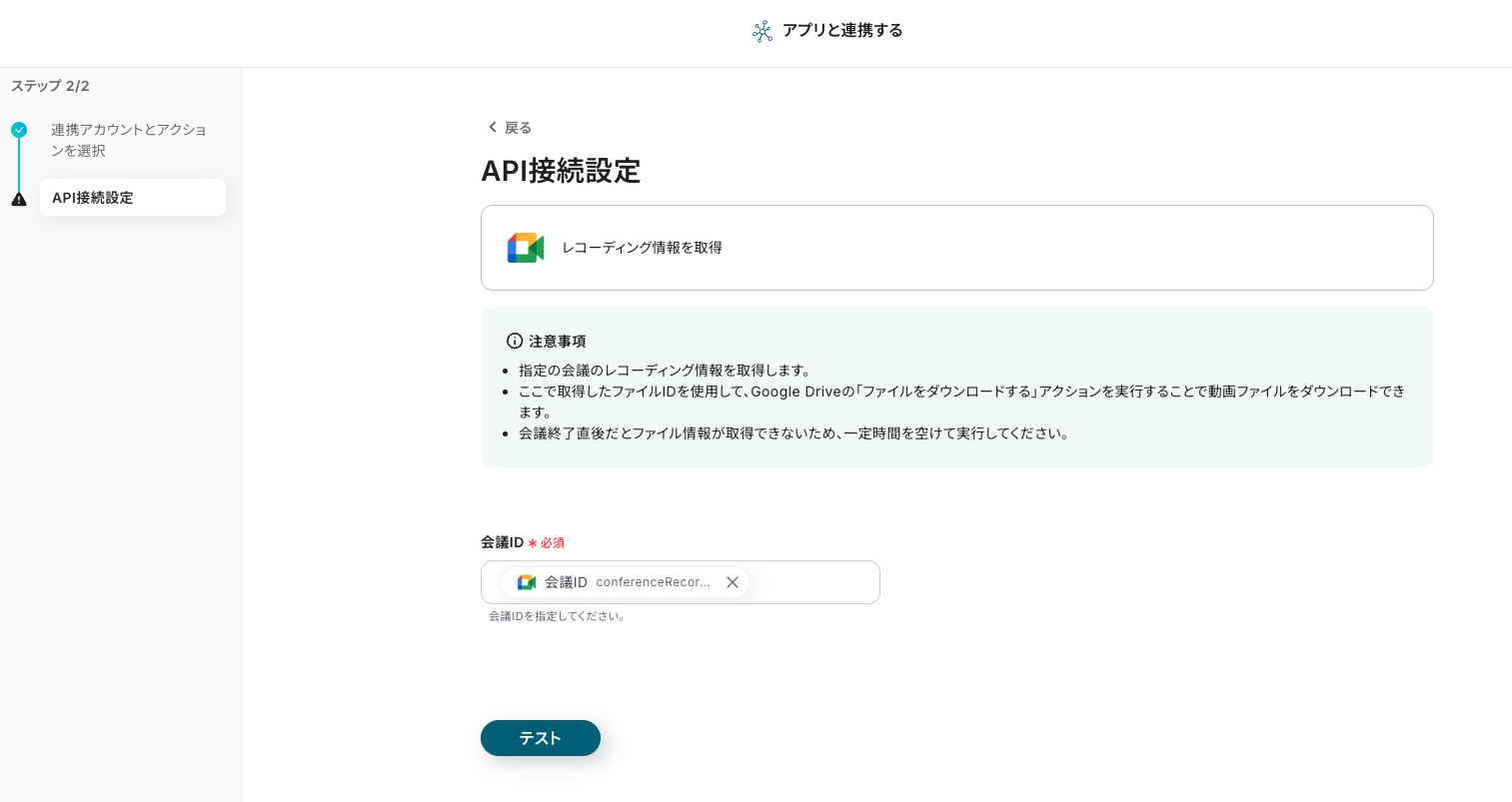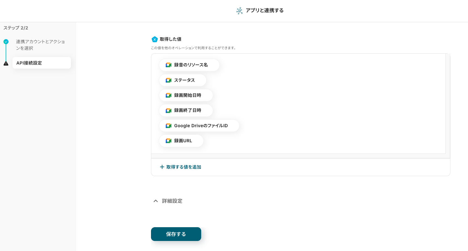ステップ5:アプリと連携する「レコーディング情報を取得」
