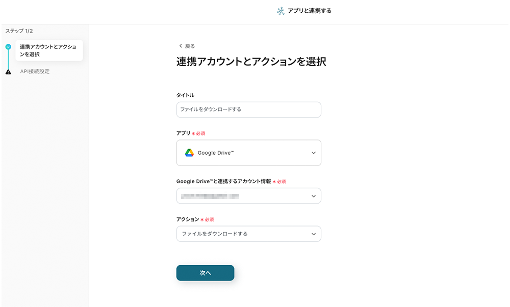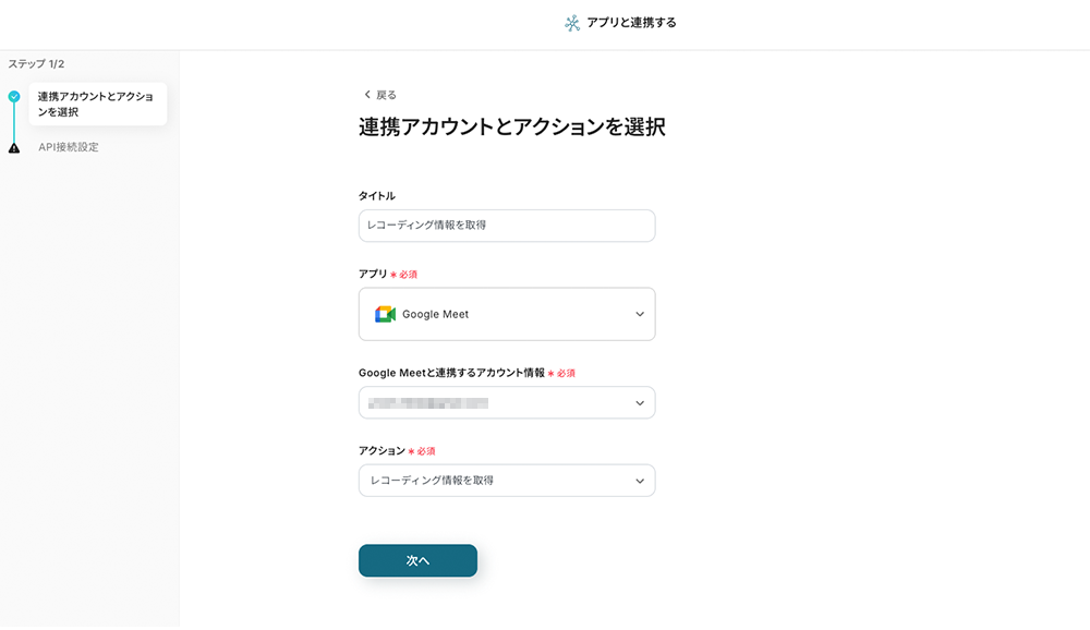 (1/2)連携アカウントとアクションを選択