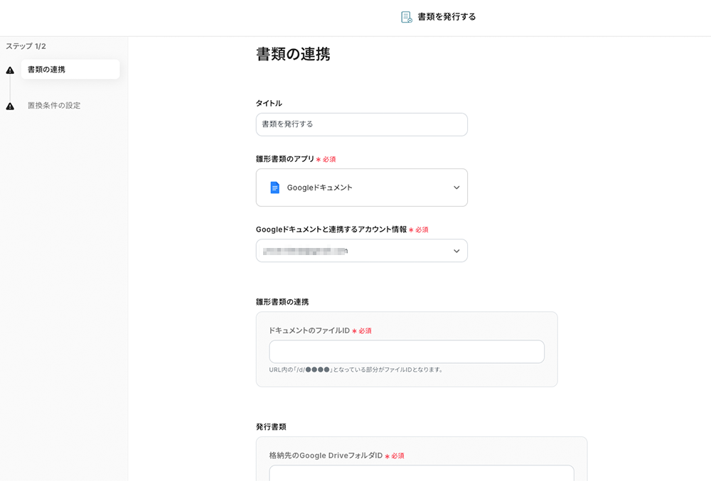 Googleドキュメントと連携するアカウント情報