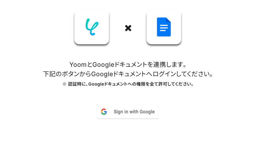 こちらの画面が表示されたらGoogle アカウントにサインインするボタンから連携に進みます。