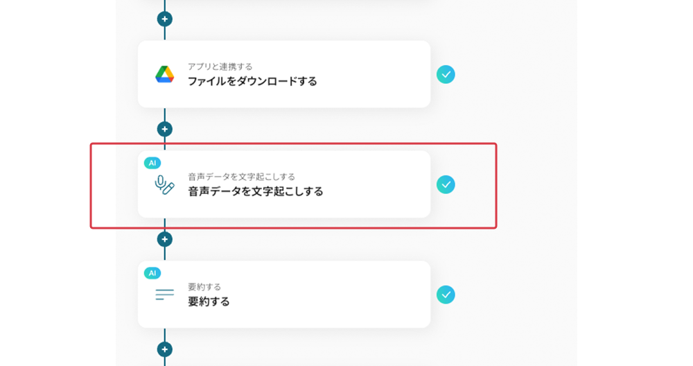 Yoomには会議の音声データからAIで議事録を自動作成する業務フロー自動化のテンプレート が用意されています。