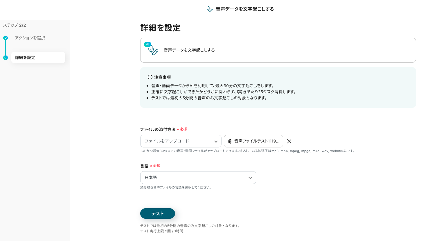 ステップ7:音声データを文字起こしする「音声データを文字起こしする」