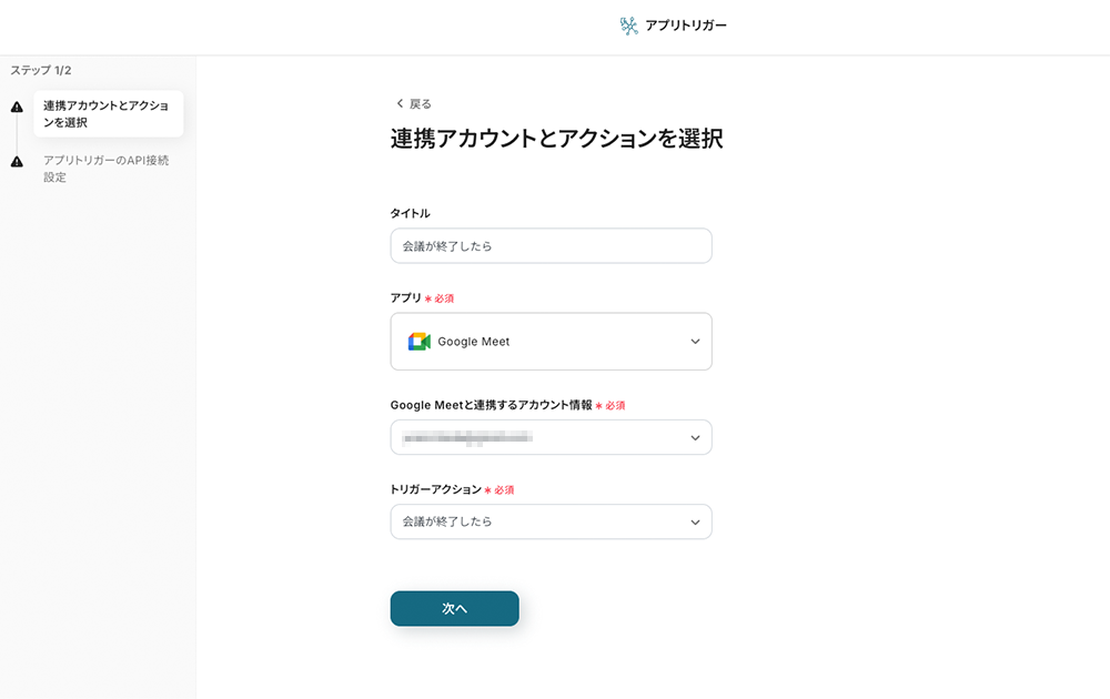 ステップ3:アプリトリガー「会議が終了したら」