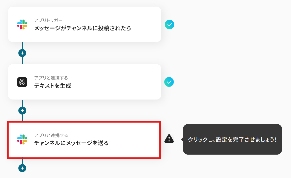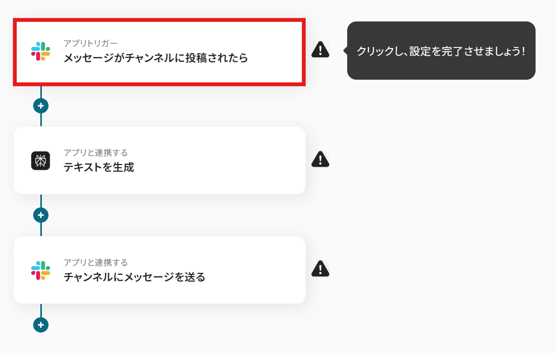 まず、一番上の「メッセージがチャンネルに投稿されたら」のアイコンをクリックします。
