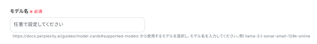 モデル名:こちらから使用するモデルを選択し、入力しましょう。