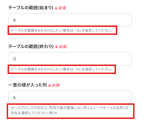 5.「スプレッドシートID」、「シートID」は候補から選択してください。