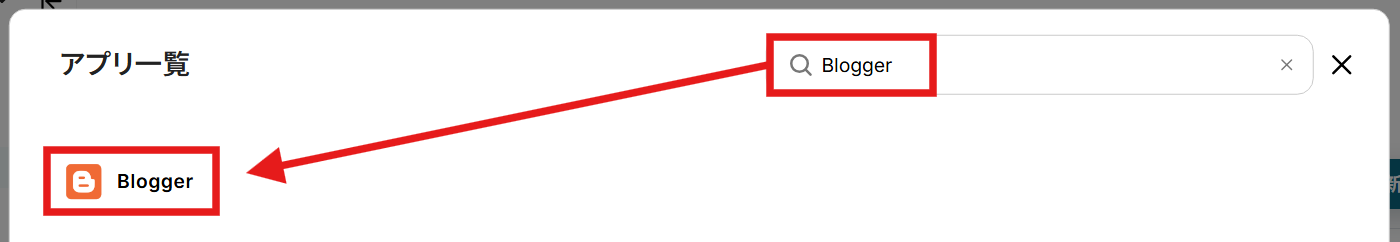 Bloggerのマイアプリ登録方法 Bloggerを検索し、クリックします。